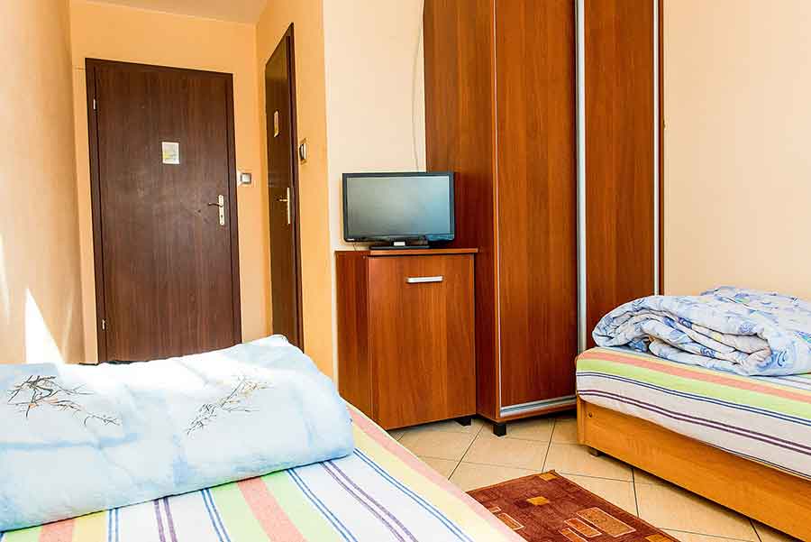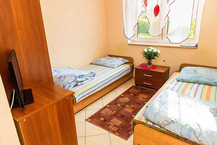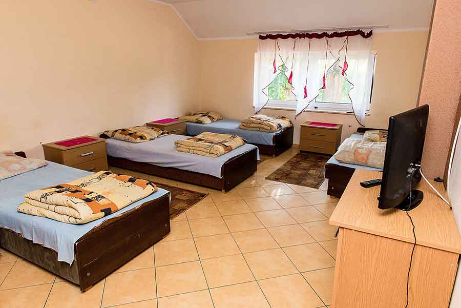 Zapewniamy dobrze wyposażone tanie pokoje oraz przestronny domek – każdy znajdzie tu coś dla siebie. Oferujemy pokoje dwu oraz czteroosobowe, wraz z możliwością dostawki. Dla wymagających proponujemy domek, który jest idealny dla rodzin. Wszystkie pokoje oraz domek wyposażone są w szafę, telewizor oraz łazienkę wraz z prysznicem. Pomieszczenia wykonana są w wysokim standardzie oraz posiadają wygodne łóżka.